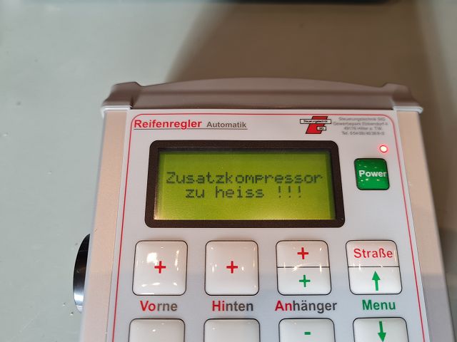 Lösung: Korregieren Sie die falsche Einstellung auf "Zusatzkompressor am Anhänger", beachten Sie bitte dazu die Betriebsanleitung Seite 7-10. - Kommt der Alarmhinweis, obwohl der Zusatzkompressor kalt und die
