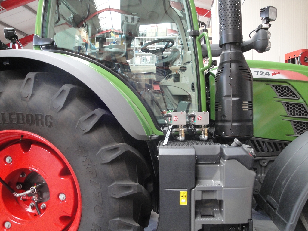 Bild 14: Fendt 724 Bj. 2020 mit Radgewicht und Reifenregler, elektrische Kugelhähne seitlich