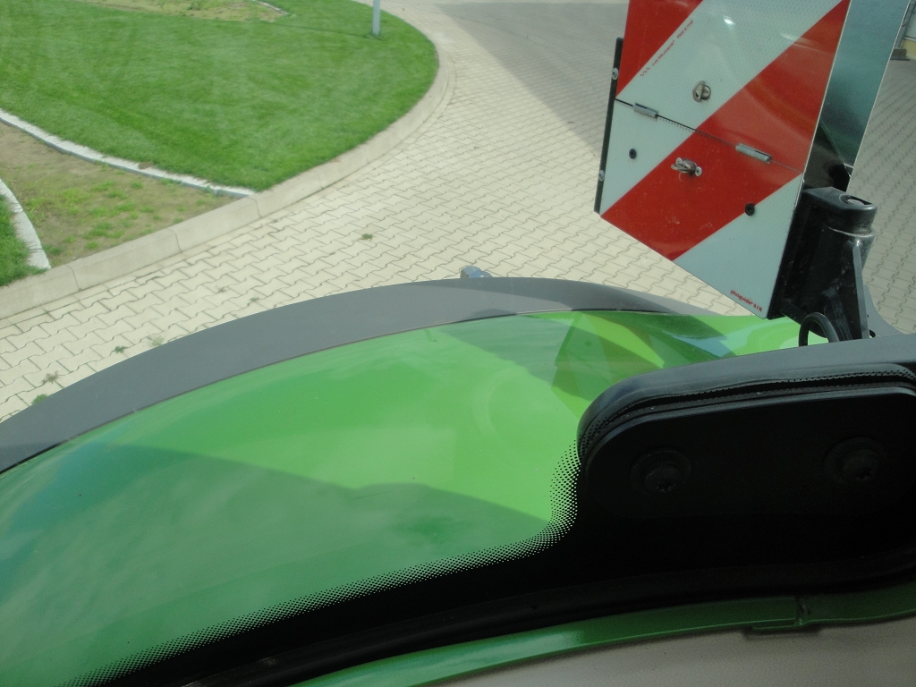 Bild 16: Fendt 724 Bj. 2020 mit Radgewicht und Reifenregler, Rohrbügel vorne rechts aus der Fahrerperspektive