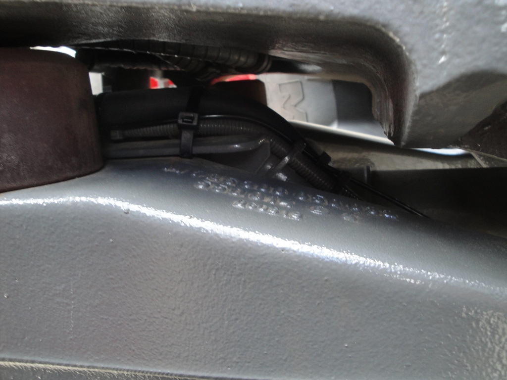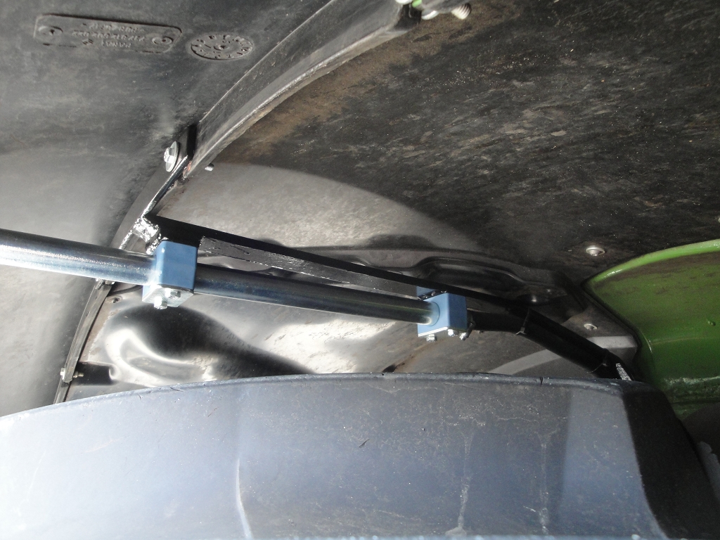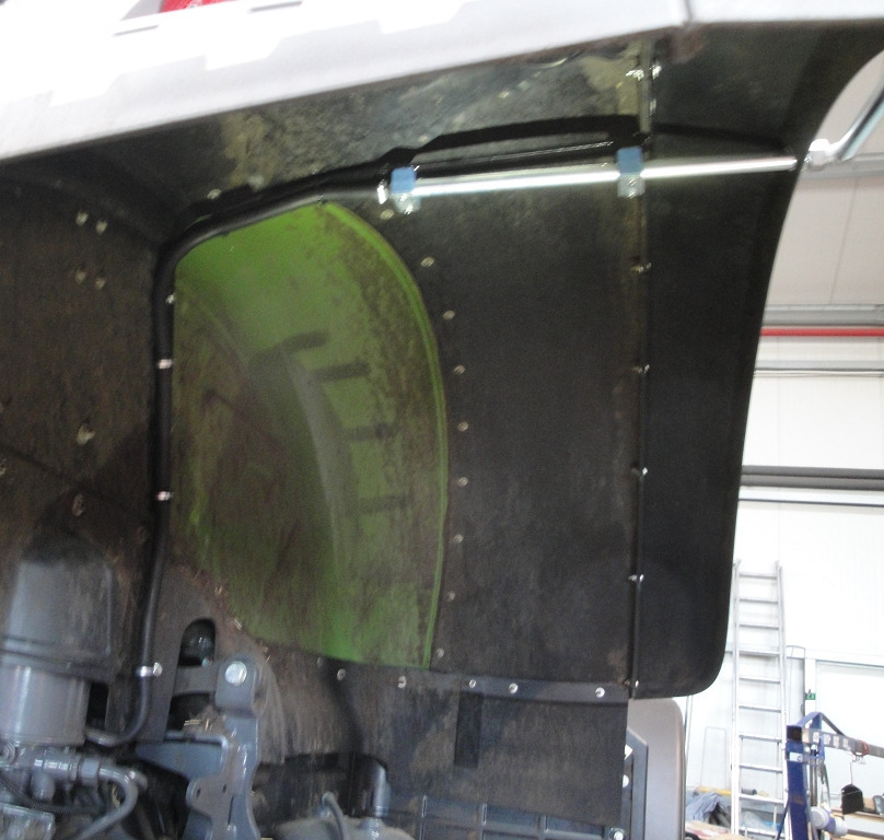 Rohrbügel an Hinterachse wird durch Bohrung in Kotflügelverbreitung geführt.