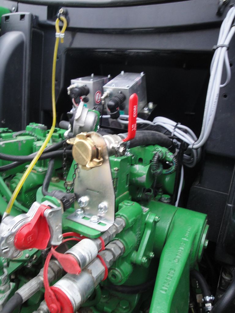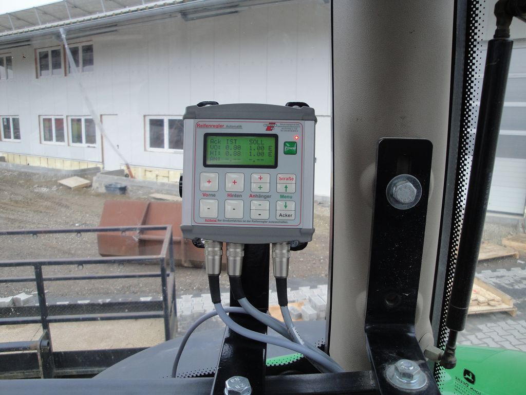 Bild 29: JD 6210R Bj. 2017 mit Steckachsen, Reifenregler, Doppeldrossel mit Absperrhahn zur Umstellung der Zusatzkompressorleistung, nur Schlepper oder Schlepper + Anhänger