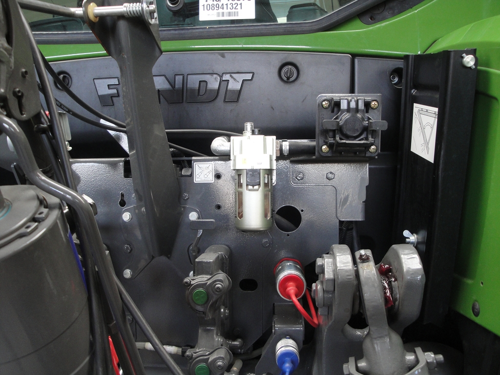 Bild 11: Fendt 516 Bj. 2022 Reifenregler Nebelöler hinter Halter für Bremskupplungen montiert