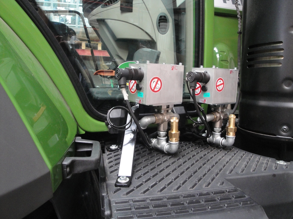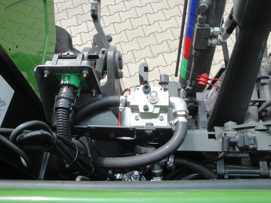 Bild 15: Fendt 724 Bj. 2020 mit Radgewicht und Reifenregler, elektrische Kugelhähne seitlich