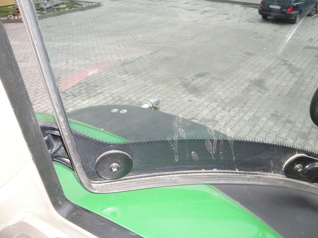 Bild 16: JD 6210R Bj. 2017 mit Steckachsen, Reifenregler, Rohrbügel vorne rechts aus der Fahrerperspektive