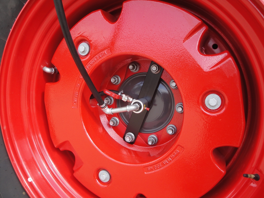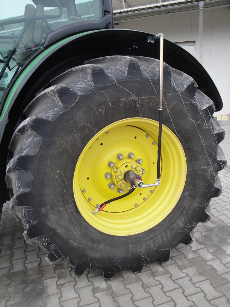 Bild 23: Fendt 724 Bj. 2020 mit Radgewicht und Reifenregler, Schlauchführung auf Vorderachse vorne links