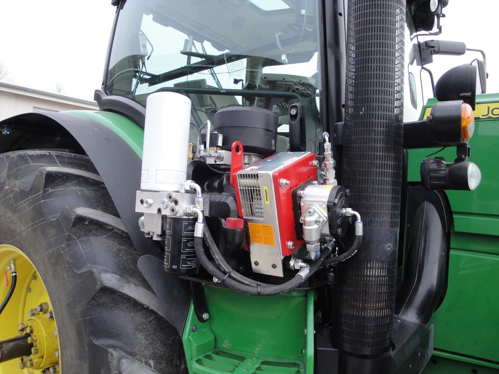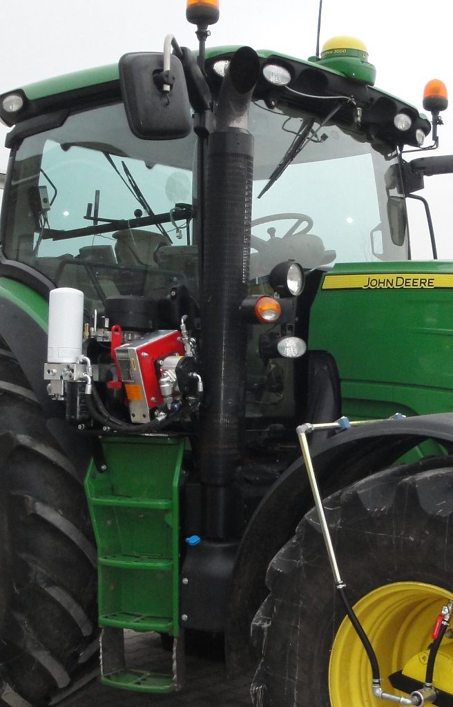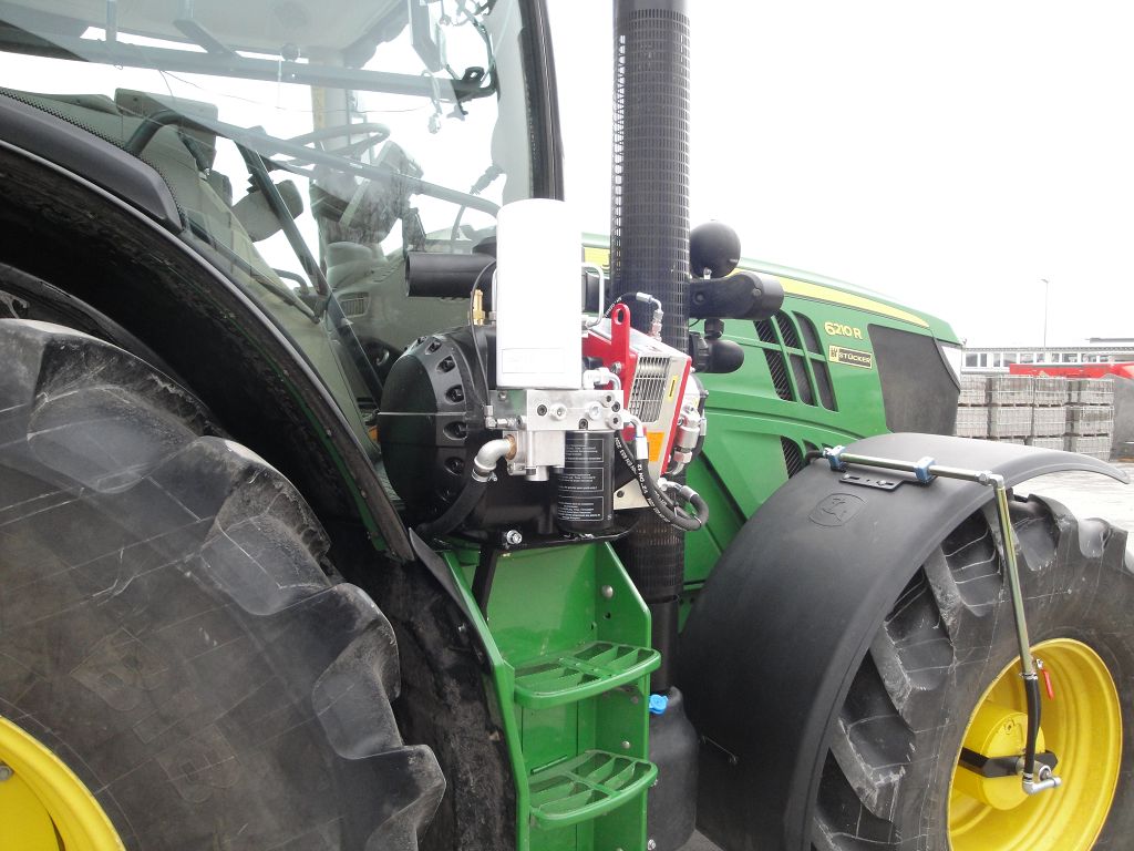 Bild 23: JD 6210R Bj. 2017 mit Steckachsen, Reifenregler, Zusatzkompressor rechts auf dem Aufstieg