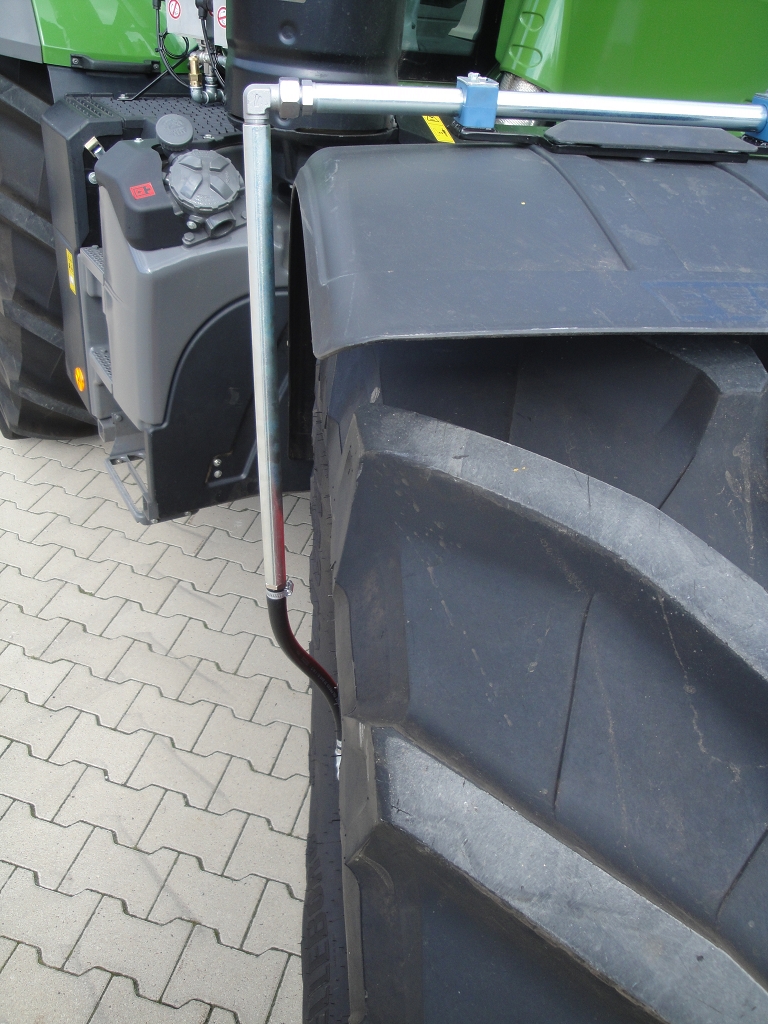 Bild 8: Fendt 516 Bj. 2022 Reifenregler Ansicht auf Rohrbügelbefestigung und Schlauchführung vorne links