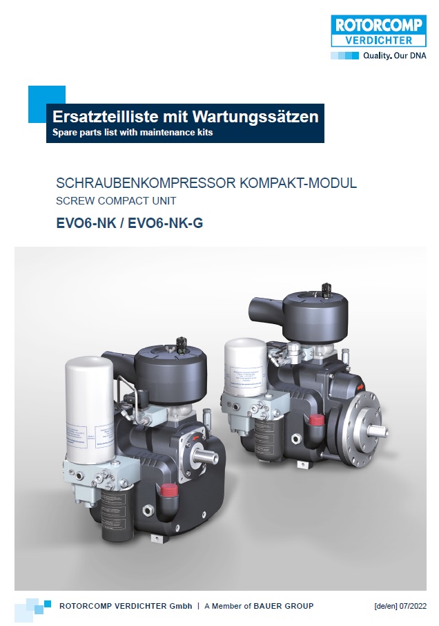 Ersatzteilliste und Explosionszeichnung vom Rotorcomp EVO-6-NK / EVO-6-NK-G Schraubenverdichter.